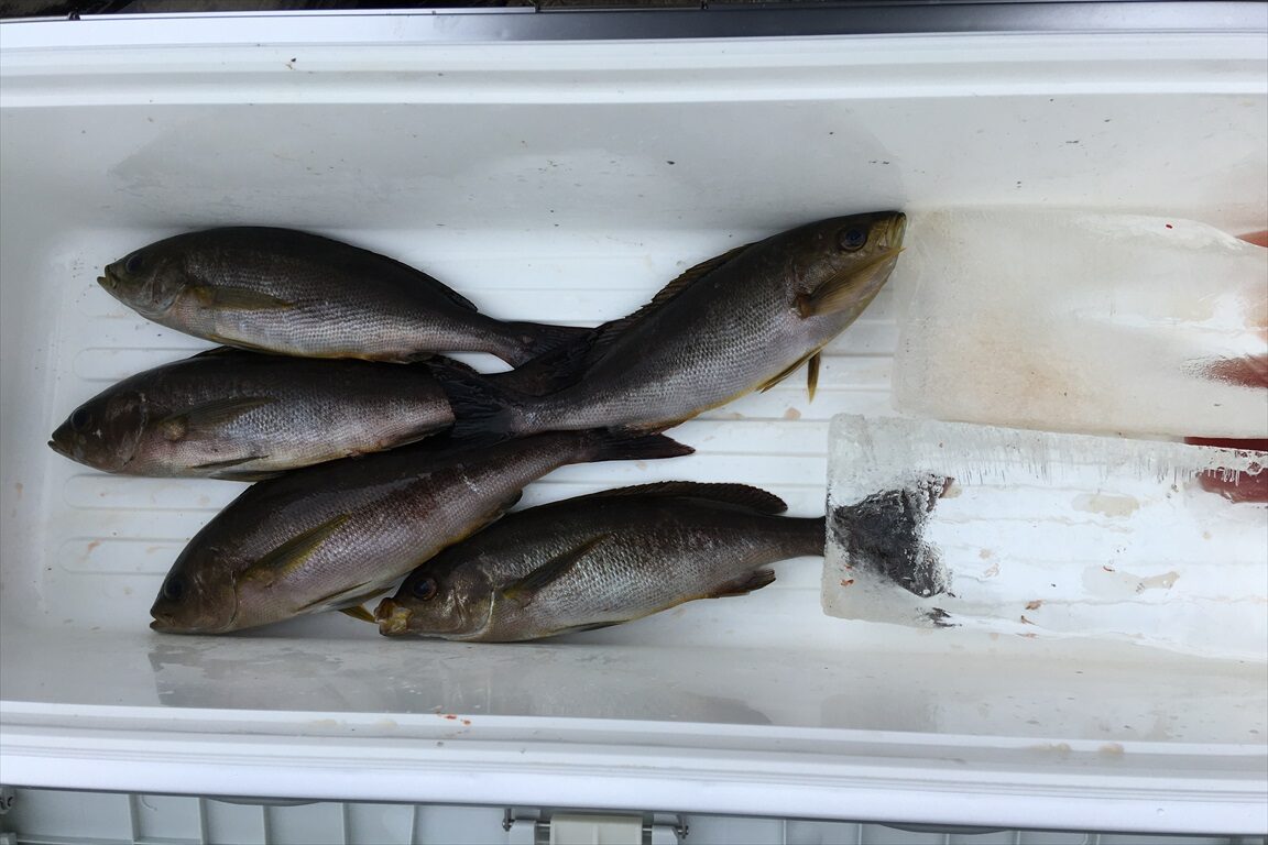2021/12/23 美良島 東のスベリ 01/27/2022 01/05/2025 釣果 ヒラマサ狙いと船長に伝えると東のスベリに上がれました。しかし掛かるのはイサキばかり、20匹以上釣りましたが、ほとんどリリースし、持って帰ったのは30cm以上の5匹のみ。 夜は底物を狙ってみましたが、油断していると強烈な当たりがきて一瞬で竿が引き込まれ、極限まで曲って竿受けの所で折れてしまいました。4号竿なのに・・・・、10号ハリスもチモトで切られていました。